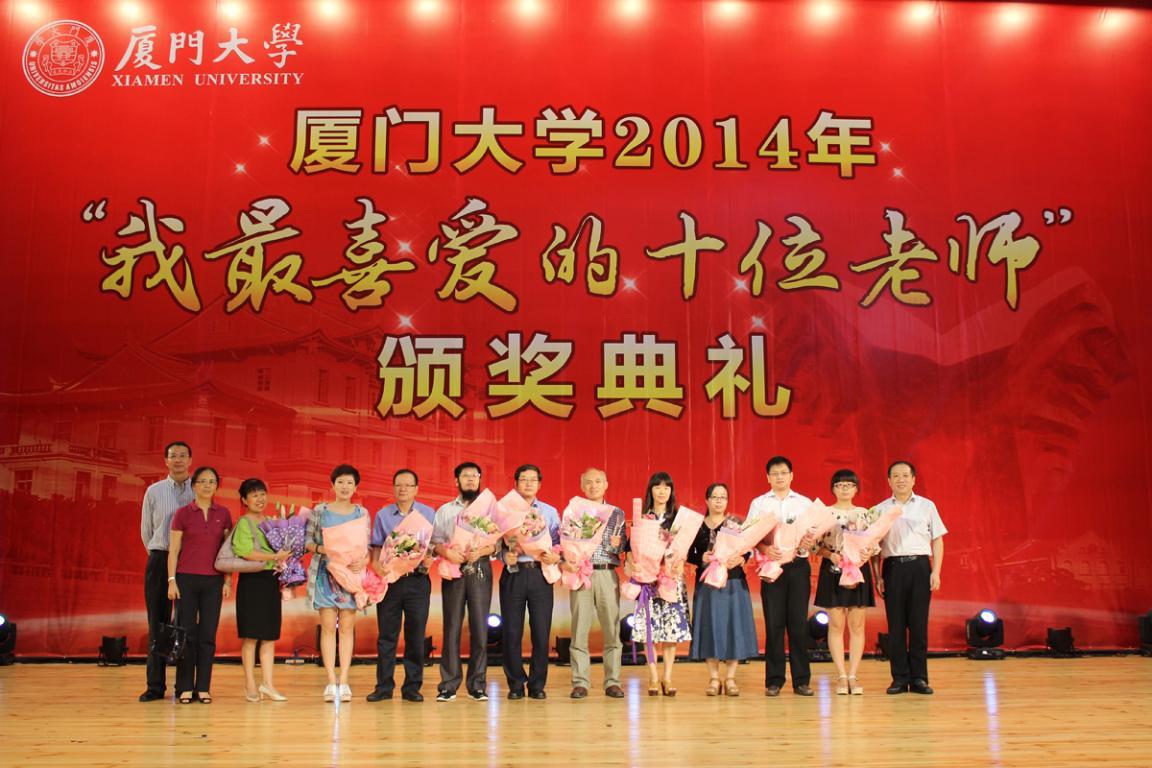 The presentation of “My Ten Favorite Teachers” awards was held in Xiamen University on October 22. Ten award-winners were elected by the students voting online.The ten teachers are from different schools of the university. They are Lin Jianhua, professor of School of Mathematical Sciences, Wang Beizhan, professor of School of Software, Zhou Changle, professor of School of Information Science and Technology, Sun Liying, professor of School of Management, Hu Hongmei, professor of School of Architecture and Civil Engineering, Lin Shengcai, professor of School of Life Sciences, Huang lingyi, professor of College of Foreign Languages and Cultures, Guo Ye, professor of School of Economics, Shi Yan, professor of College of Humanities, and Zheng Gaofeng, professor of School of Physics and Mechanical & Electrical Engineering.