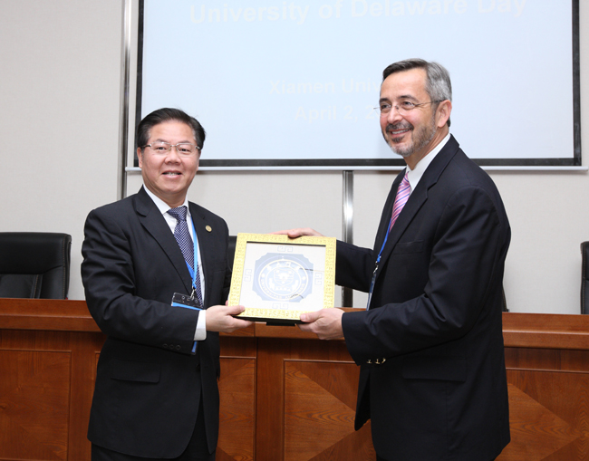 During XMU’s 93rd anniversary celebration, a seventeen-member delegation from a fine university in an American state on the east coast arrived at Xiamen to attend a celebration in their honor. “University of Delaware Day” at Xiamen University took place from April 2 and 3, 2014.
