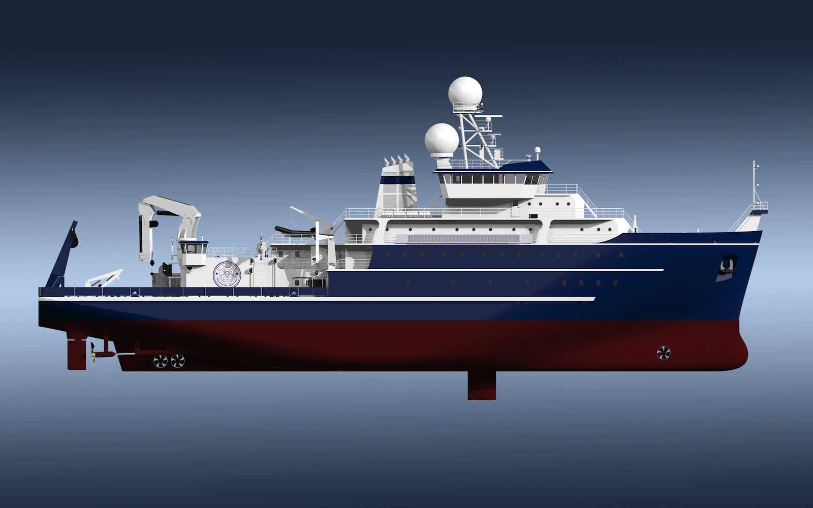 The total length of this ship is 77.70m, with a waterline of 75.20m, a width of 16.24, and a depth of 8m. The draft is 5m, and the displacement is 3432 tons. The highest speed can reach up to 14 knots, the cruising distance is 10000 sea miles, and the duration day is 50.The fixed number of passengers is 54 (18 crew members and 36 scientists). The area of board is 432 square meters and the lab rooms cover an area of 375 square meters.
