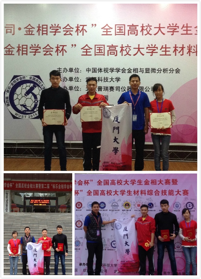 The 4th Zeiss National Metallurgical Contestand the 2nd Buehler National Material Integrated Skills Contest for College Students were held at Wuhan University of Science and Technology from October 14th to October 16th. Three students from the XMU College of Materials contended fiercely with 240 other undergraduates from 80 other colleges from across the country. Hao Runzi, an undergraduate of 2013, garnered the first prize in the Materials Integrated Skills Contest, and Lai Yongjue and Lin Mushun, two undergraduates of 2014, raked in the second prize and the third prize respectively in the Matallurgical Contest. The impressive achievements of the competition team headed by Associate Professor Yao Rongqian owed much to the strong support of the Center for Materials Science and Engineering Laboratory Teaching of the XMU College of Materials.