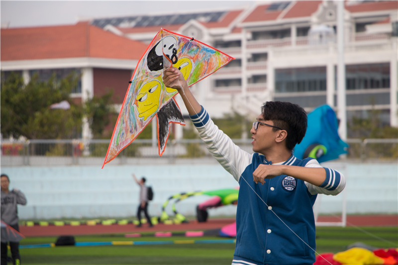 On December 11, the 4th Kite Festival of Xiamen University was held at the track field on XMU Xiang’an Campus. At 8:00 in the morning, the contestants fetched at the display area their separate kites that had been hand-painted by themselves and started to tether threads to the kites for a trial flight. When the opening ceremony and performances ended, the participating teams got themselves geared up for the kite flying competition, during which over 100 kites soared into the sky one after another. When the game was in full swing at the main venue, the parent-child interaction zone was also buzzing with activity and excitement. The host provided free blank kites and pigments, with which many children busied themselves designing and painting the kites on the scene with their parents. When the painting job was done, the kids went running and frolicking with the kite reels in their hands, the scene just reminding us of a verse of an ancient Chinese poem that goes “children hurried back home after school with zest, for they were eager to catch the vernal wind to fly the kite.”
