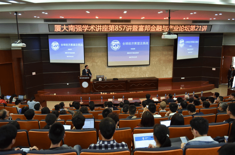 On December 15, Lin Jianhai, Secretary of IMF(International Monetary Fund)and IMFC(International Monetary and Financial Committee), paid a visit to XMU and gave a Nanqiang academic lecture entitled Global Economy: Prospects and Challenge.