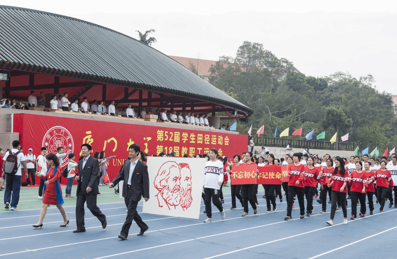 XMU kicked off its 52nd sports meeting on November 3, marking the comeback of the most exciting annual activity for students and faculty this year. The newly upgraded playground of Yanwu exuded vibes of joy and fun on the sunny morning when the faculty gathered to observe the grand opening of this annual event. Party Secretary Zhang Yan, President Zhang Rong, Vice Party Secretary and Vice President Li Jianfa, Vice Party Secretary Lin Dongwei, Vice President Zhan Xinli, Ye Shiman along with other school leaders, graced the ceremony by their presence.