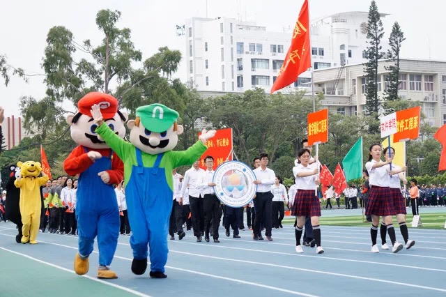 At 8:30, the uplifting music of the Sportsmen March echoed in the stadium and kick-started the march-in ceremony. Athletes from various colleges and schools paraded into the stadium with their heads held high at an orderly pace, brimming with youth and vitality. Each phalanx showcased their own unique culture with their fancy costumes and creative performance which caught the spectators’ eyes and drew waves of applause and cheers. After the flag-raising ceremony, president Zhang delivered the opening statement wherein he stressed the importance of sports for the whole nation, and reviewed XMUers’ splendid record in varied sports games over the past year. He conveyed his best wishes to the athletes, hoping they could achieve the best results by fully showcasing the indomitable spirit of sportsmanship in the upcoming competitions in the newly refurbished sports field.