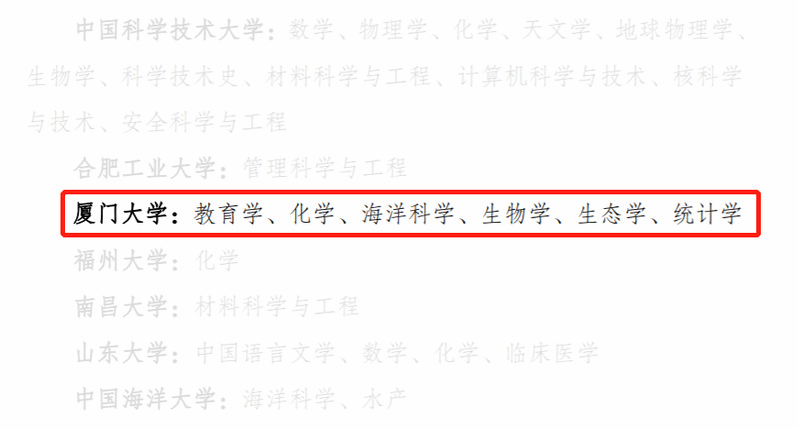 The second list of universities and disciplines included in the ‘double world-class project’ was released. Xiamen University and its six disciplines, including Education, Chemistry, Ocean Science, Biology, Ecology and Statistics are selected.
