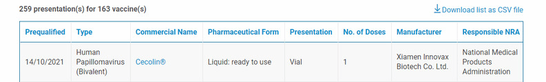 On 4 October 2021, the World Health Organization (WHO) announced on the official website that Cecolin®, the first Chinese Human Papillomavirus (HPV) vaccine developed by Xiamen University and Xiamen Innovax Biotech CO., LTD. under the YangShengTang Group, got WHO Prequalification (PQ). This is the first China-developed anti-cervical-cancer vaccine that has obtained PQ, and is also the first anti-cervical-cancer vaccine whose proprietary intellectual property right is wholly owned by a developing country.