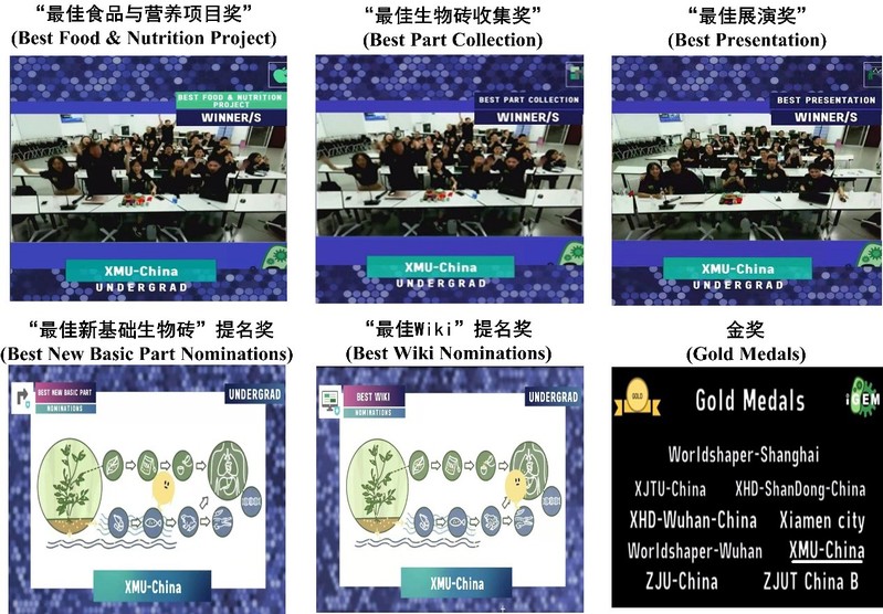 The Award Ceremony was held on 22and 23 November 2020. The team of Xiamen University, XMU-China, won the gold medal once again. More excitingly, they won the second runner-up with 3 awards and 2 nominations (Best Food & Nutrition Project, Best Presentation, Best Part Collection, Best New Basic Part Nomination, and Best Wiki Nomination).