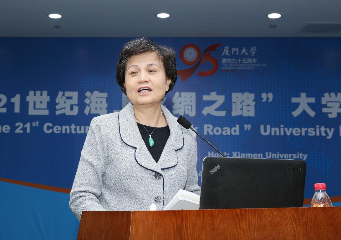 Xu Lin, general-secretary of Confucius Headquarters (Hanban), expressed her congratulations on the 95thanniversary of Xiamen University. She said that the key point of“One Belt, One Road”lies in the“five exchanges”, such as“exchange of policies, exchange of facilities, exchange of trades, exchange of capitals, and exchange of thinking”, while Confucius Institutes play an important part in the exchange of thinking. Hanban will continue to support the Confucius Institutes all over the world, specially focusing on the construction and development of the Confucius Institutes in the countries along the“One Belt, One Road”area, according to her.