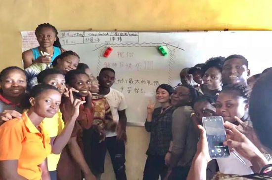 Students in Nigeria prepare a surprise for Zou Weiqin on Teachers' Day. [Photo/en.xmu.edu.cn]