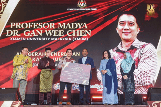 Associate Professor Gan Wee Chen receives the National Academic Award at the ceremony in Subang Jaya. [Photo/en.xmu.edu.cn]