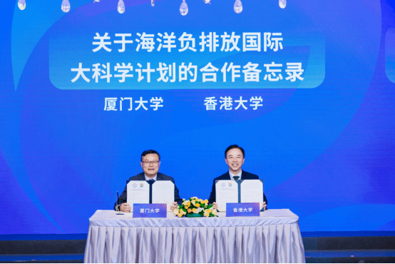 XMU and the University of Hong Kong sign a memorandum on the international big science program for ocean negative carbon emissions. [Photo/en.xmu.edu.cn]