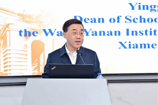 Professor Xiao Zheng delivers a keynote speech. [Photo/en.xmu.edu.cn]