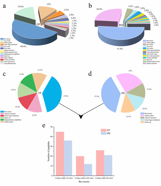 Species identification rates of proteins and target proteins of cowhide glue by FragPipe (FP) and Proteome Discoverer (PD), two widely used proteomics software packages. [Photo/en.xmu.edu.cn]