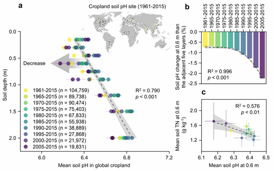 Vertical distribution and temporal changes of soil pH in global croplands. [Photo/en.xmu.edu.cn]