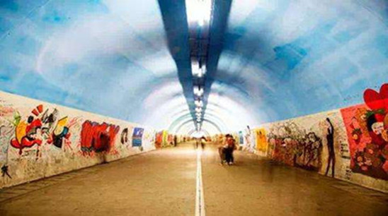 On the inside walls of the entire tunnel, there are many creative hand-painted graffiti by students of XMU, for which the tunnel is reputed as the most artistic graffiti tunnel located in the campus of a Chinese university.